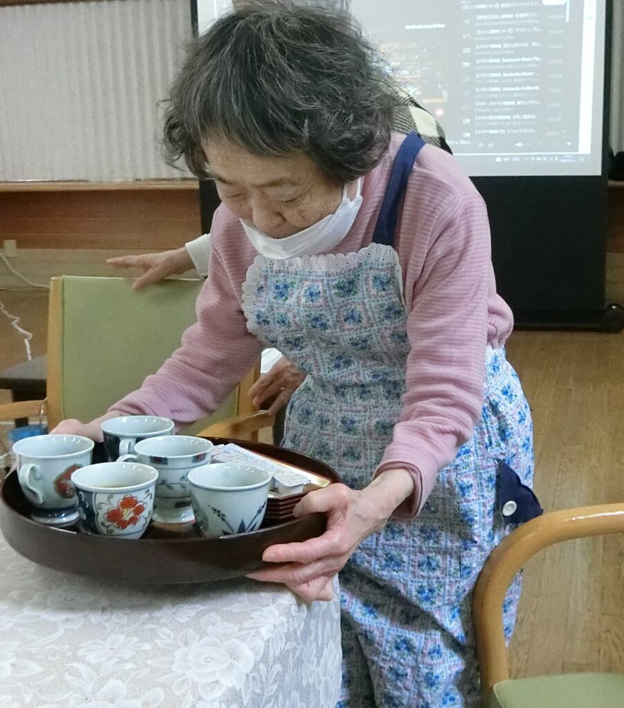 グループホームで生活し、一人の世界が少し広がりました。郁文まちづくりの会「ちょっきんな」では、地域の方々からTSUMUGIプロジェクトの紐づくりで先生と呼ばれることに大きな喜びを感じています。島原カフェで男塾さんが淹れたコーヒーをウエイトレスとして配膳させてもらえるのも楽しみとなっています。 「宇野田サロン」という集まりをつくって、次々にお知り合いができています。それは、認知症の人だけでなく、様々な人との出会い。「人と人とのつながりで大きな事を叶えていく素晴らしさを教えていただいたこと」は、私にとって大きな収穫です。年齢に捉われず、これからもできることをいろいろしていきたいです!